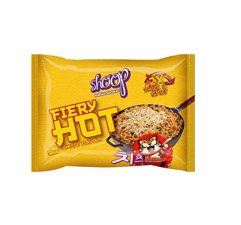 Shoop Fiery Hot Cheese Flavour Noodles are spicy and cheesy instant noodles, perfect for a quick, bold, and flavorful meal.